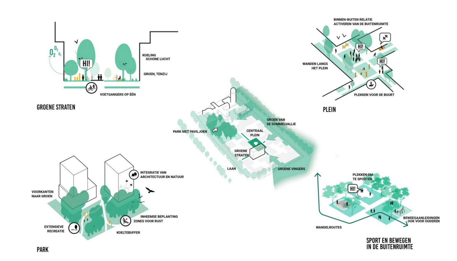 Nieuw gezond groen district, verbinden met de kwaliteit van de Dommel